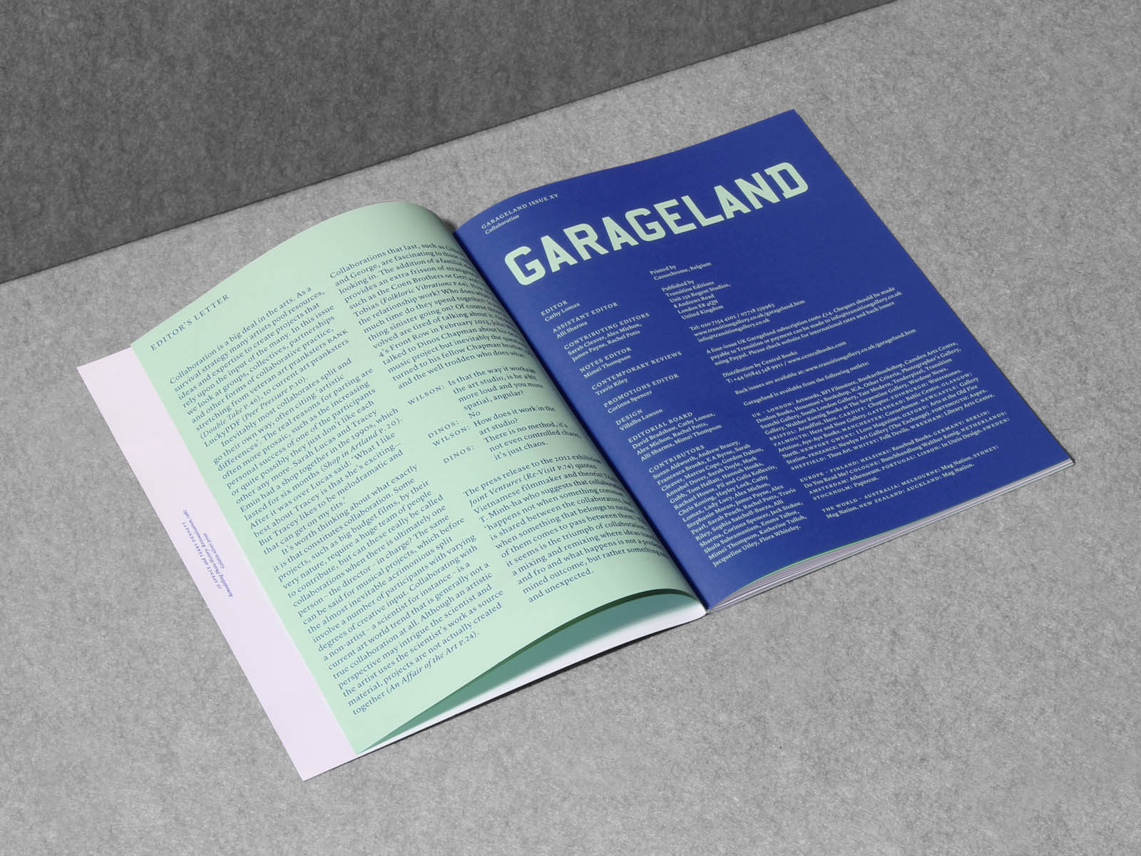 Garageland is a magazine concerned with fine arts and popular culture. Published twice a year by Transition gallery, from its base in East London. Each issue concentrates on a single theme – conceived, written and illustrated by practicing artists.
