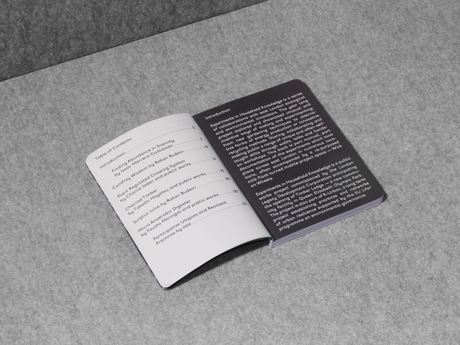 The prospectus documents the research strands and projects funded by the charity to date. The publication also includes a series of participants’ portraits photographed by Max Creasy. During it's launch a modular structure was designed in collaboration with Andreas Lang to exhibit a selection of documented projects.