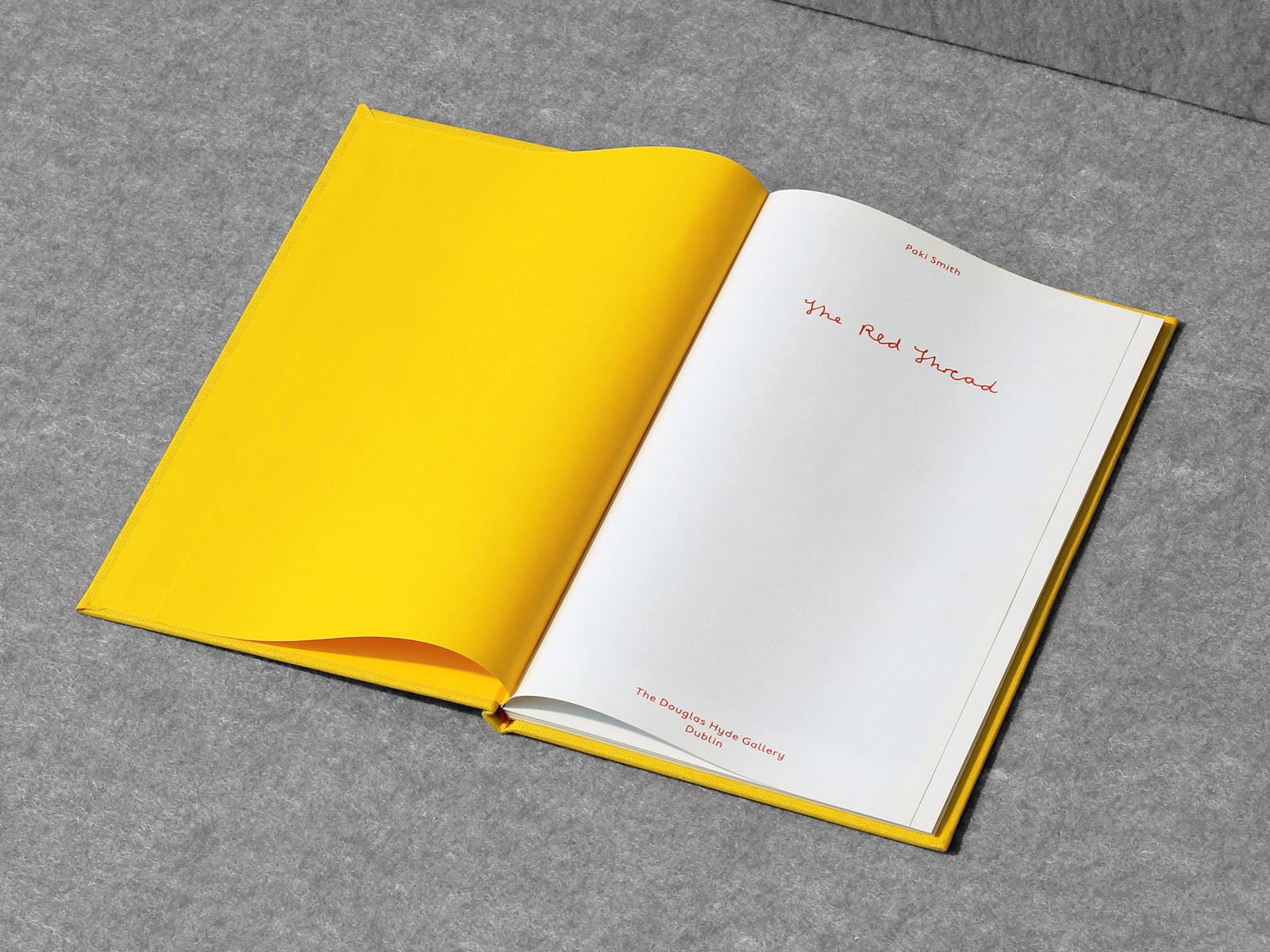 Published on the occasion of Paki Smith's The Red Thread at the Douglas Hyde Gallery, 2009. It includes images of works from the exhibition, fragments of text and source material from the artist's sketchbooks. 221 × 140 mm, 32 pages
