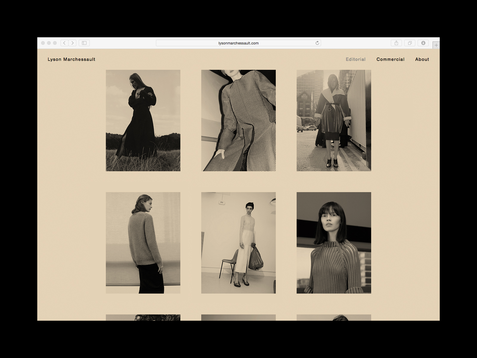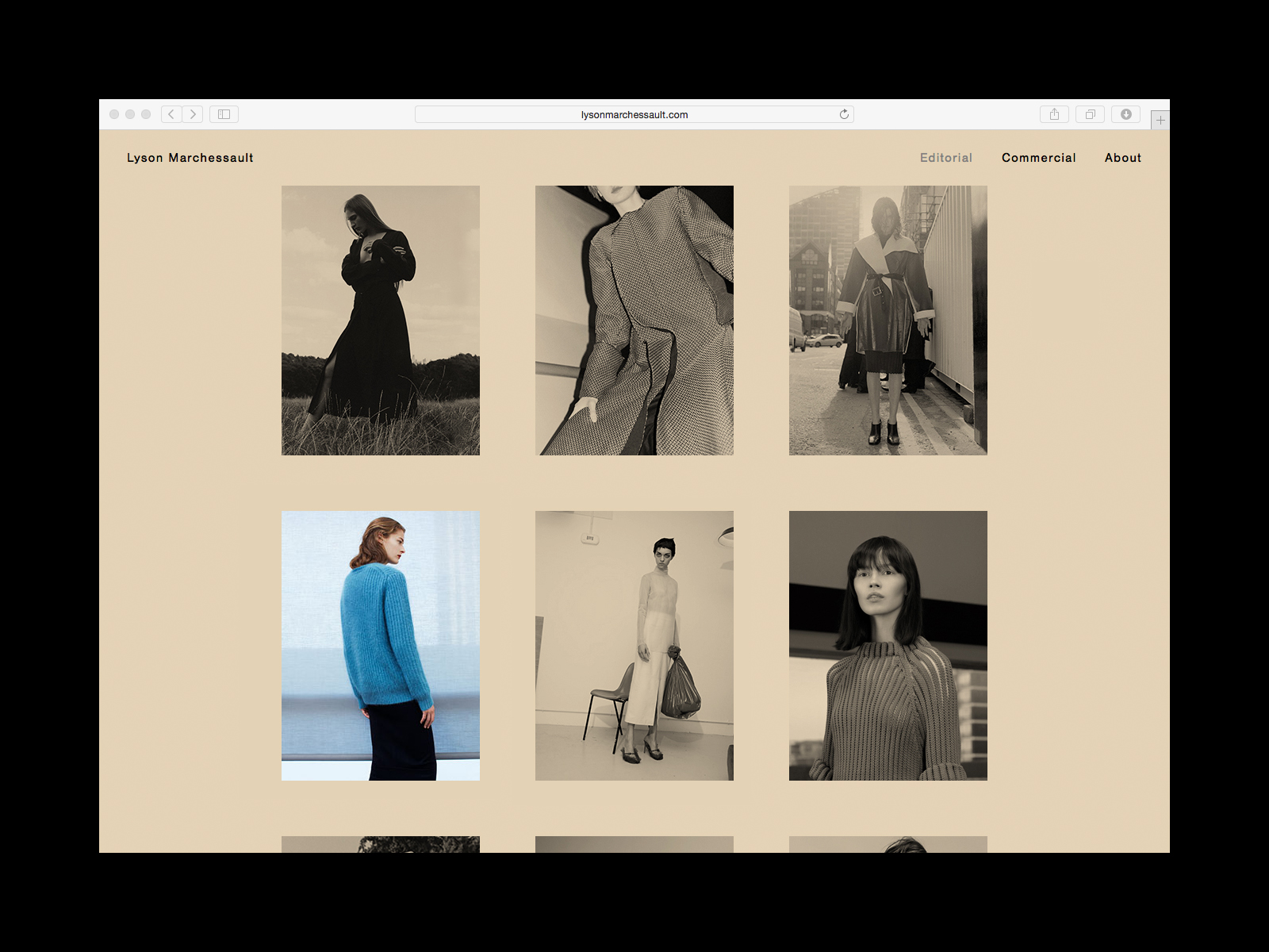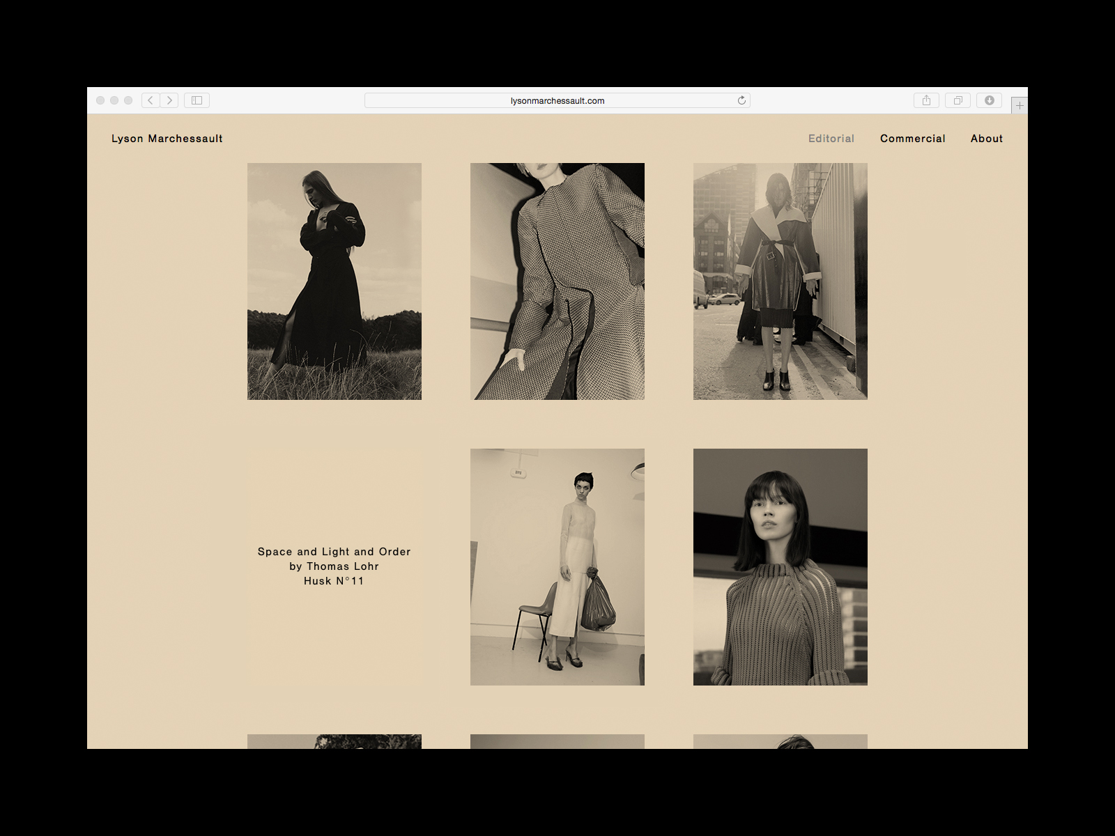 Similar to Marchessault’s work, the websites’ palette is limited to muted shades, allowing colour to accentuate rather than overwhelm. The site uses a simple framework to showcase both image and text.