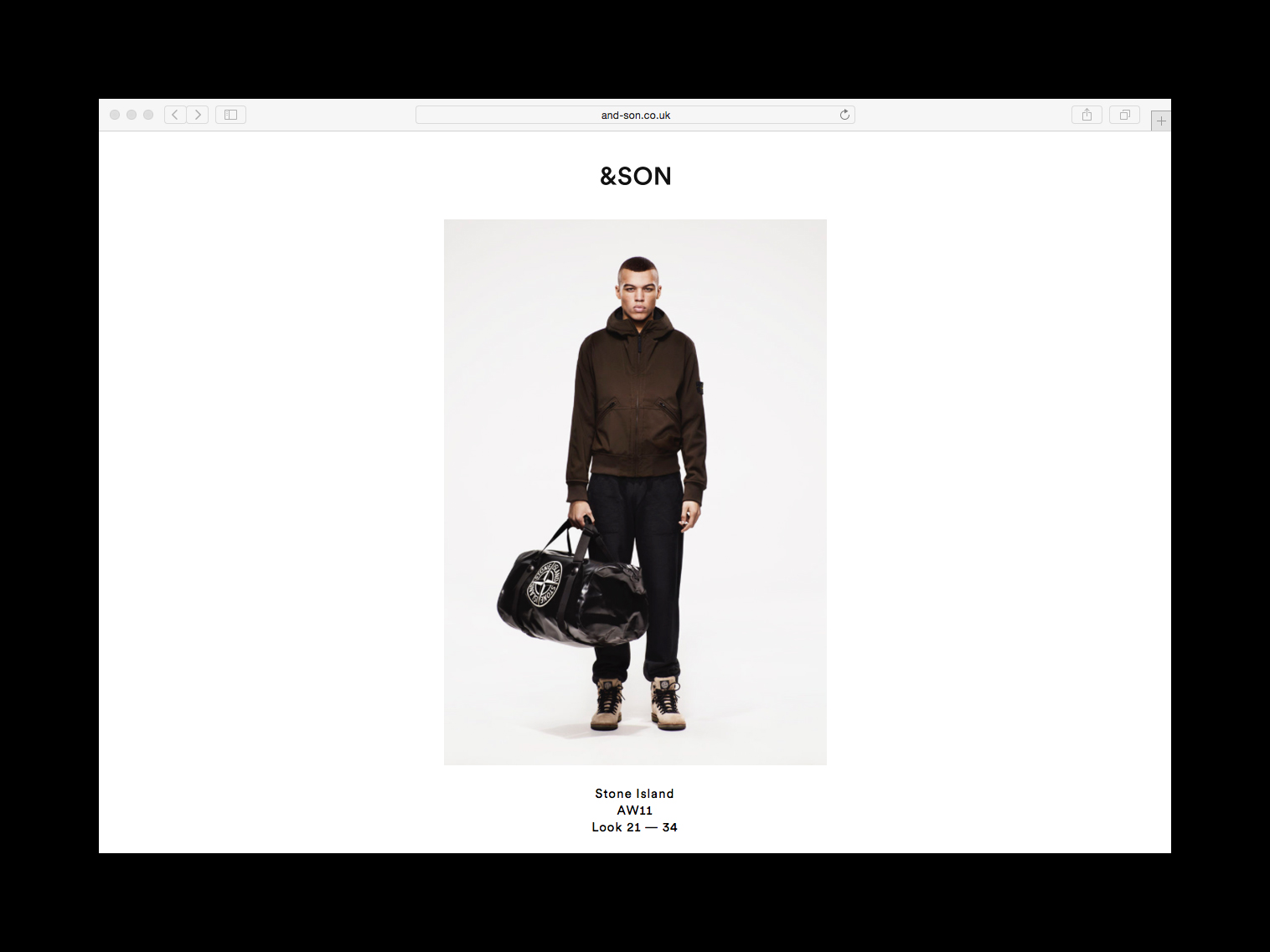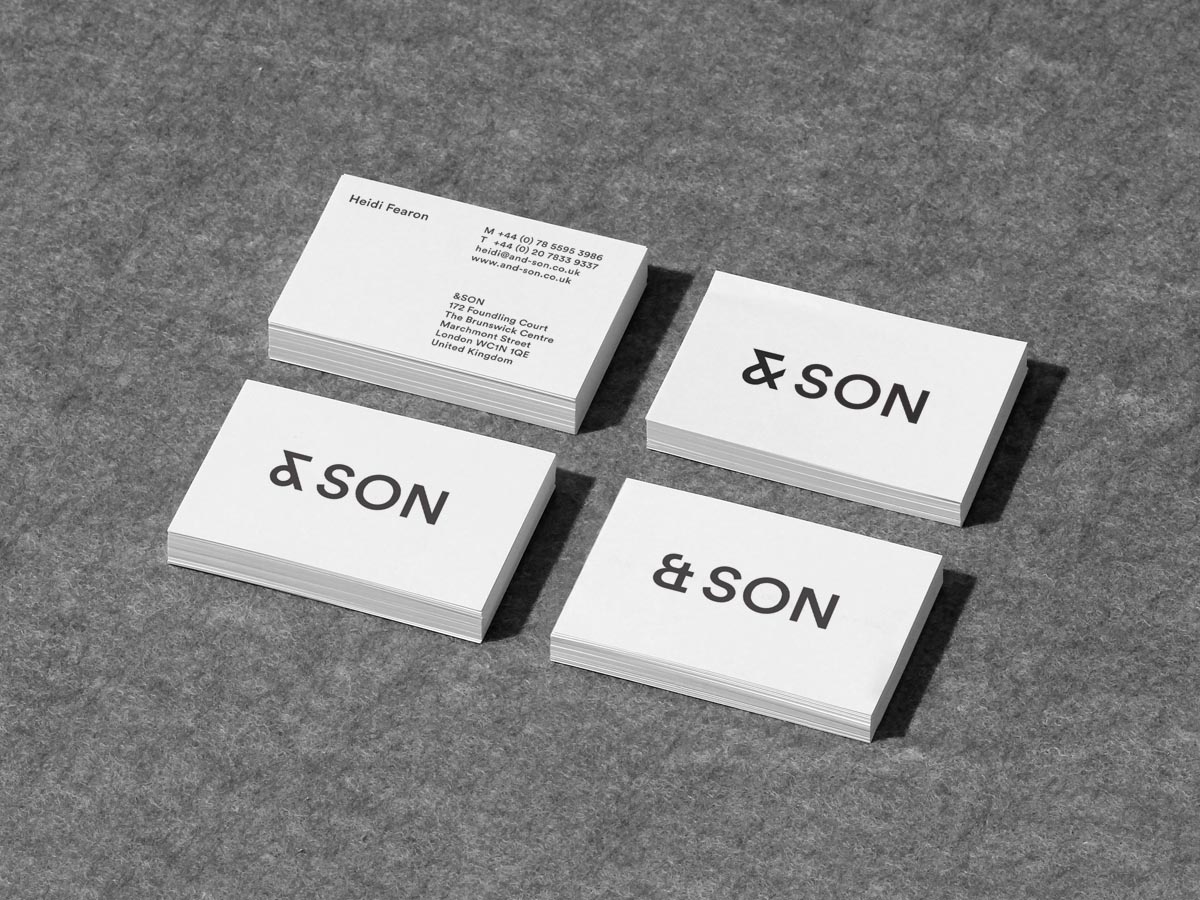 &SON is a consultancy founded by Simon Foxton and Nick Griffiths. Specialising in concept and creative direction for fashion brands such as Stone Island, Fred Perry and Adidas Originals. Their name is derived from the common formula that often follows a founders' surname in traditional British businesses. The removal of the surname hints at their approach: recognising and challenging traditional conventions.