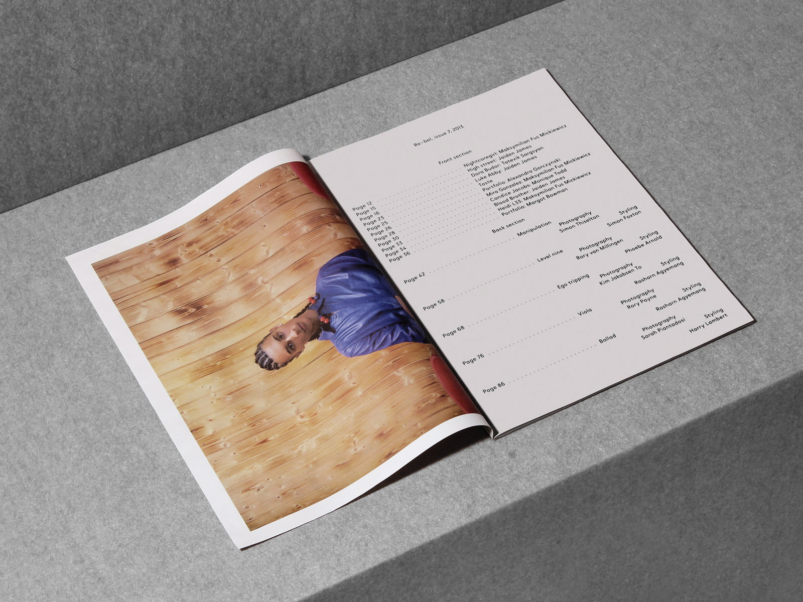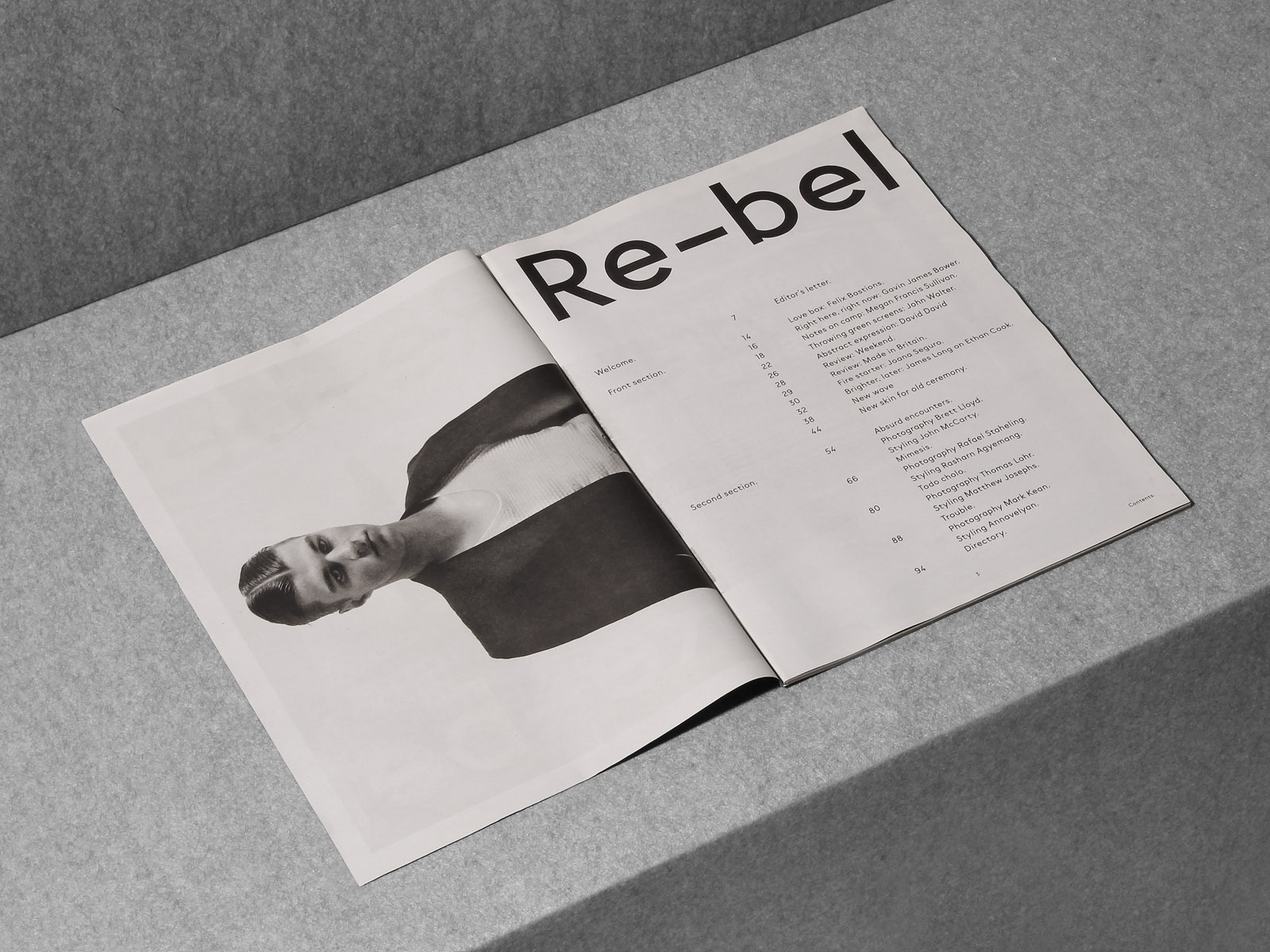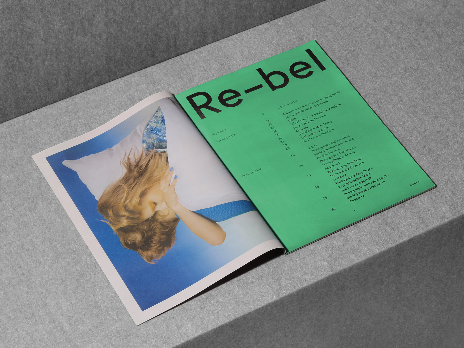 Re-bel is an independent magazine based in London and published bi-annually. It deals with fashion and youth culture, promoting new talent whom challenge the conventions of normality. It has an eclectic approach where gender issues mingle with TV celebrities and fried chicken reviews.