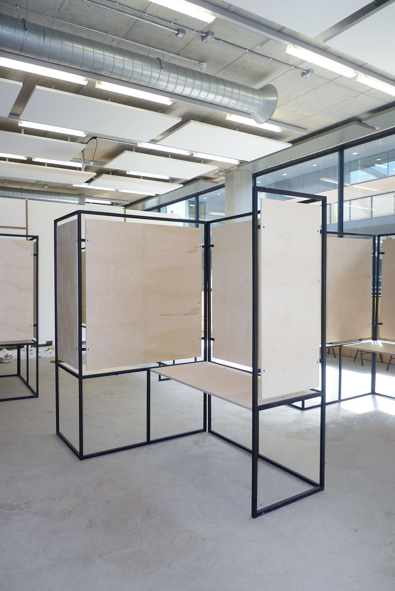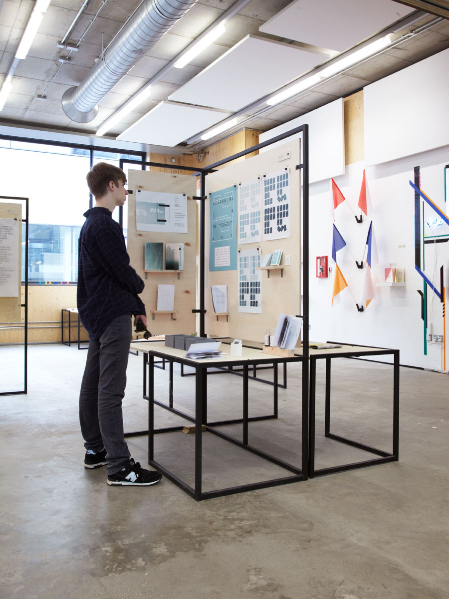 Formed in 1989, Central Saint Martins College of Arts and Design is considered one of the leading art institutions worldwide. It trains one of the largest courses of its kind in the UK, with around 150 students graduating from BA Graphic Design every year. Since moving to it’s purpose built King's Cross campus in 2012, the studio has been in charge of designing and coordinating the exhibition infrastructure for the final year exhibition. Organising the show is a complex task from a logistical point of view, given the number of students and time available for installation.